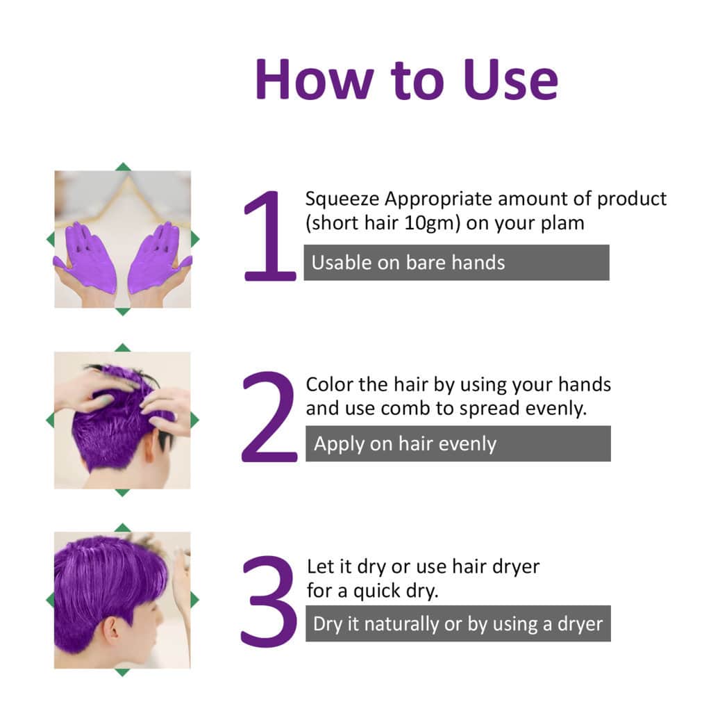 Simply Apply and let dry for a Silky Finish Hair Color and Wash with a Shampoo to remove the Color.