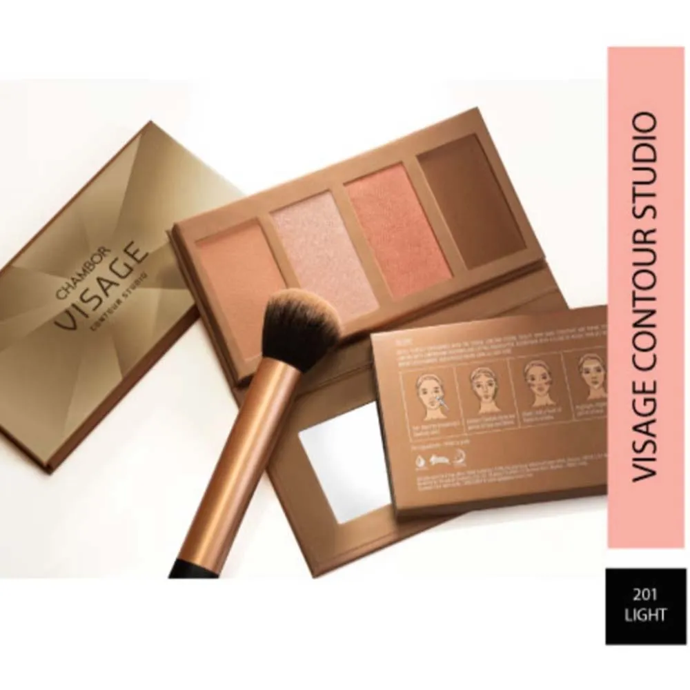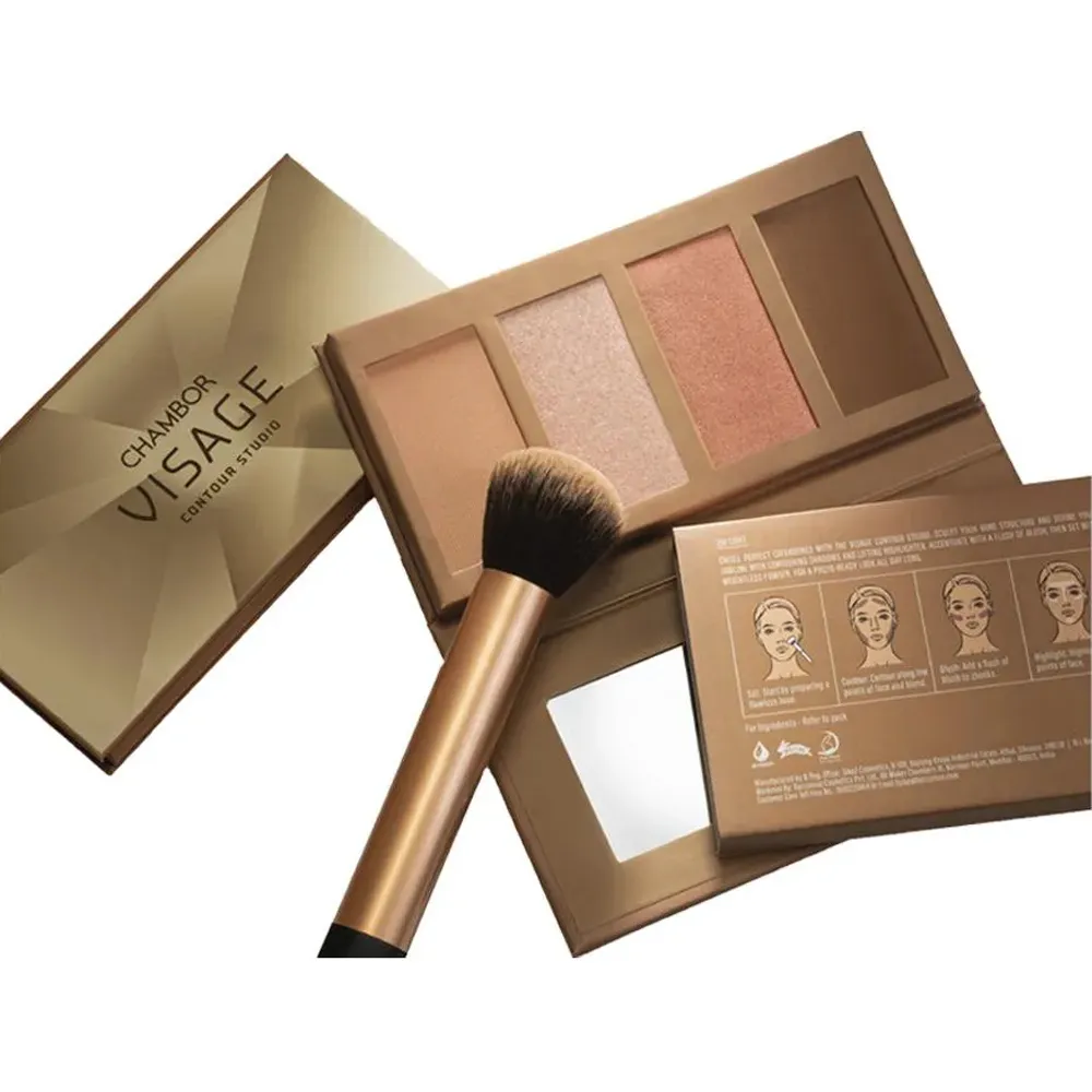 Sculpt your features with well-defined matte contours, high-shine cheekbone highlighter and a blush that stays on like an everlasting crush. Finally, call Chambor Visage Contour Studio Face Palette Make up your game with the high-coverage studio finish setting powder.