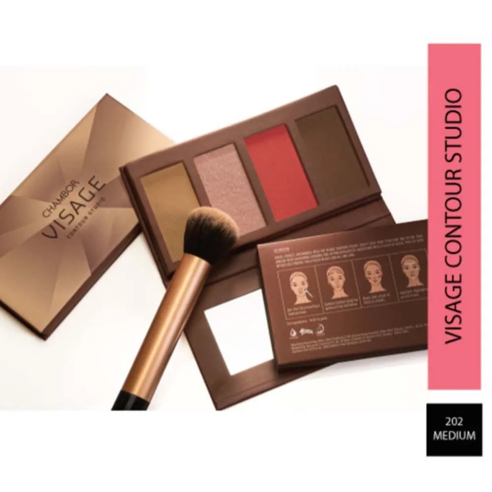 Sculpt your features with well-defined matte contours, high-shine cheekbone highlighter and a blush that stays on like an everlasting crush. Finally, call Chambor Visage Contour Studio Face Palette Make up your game with the high-coverage studio finish setting powder.