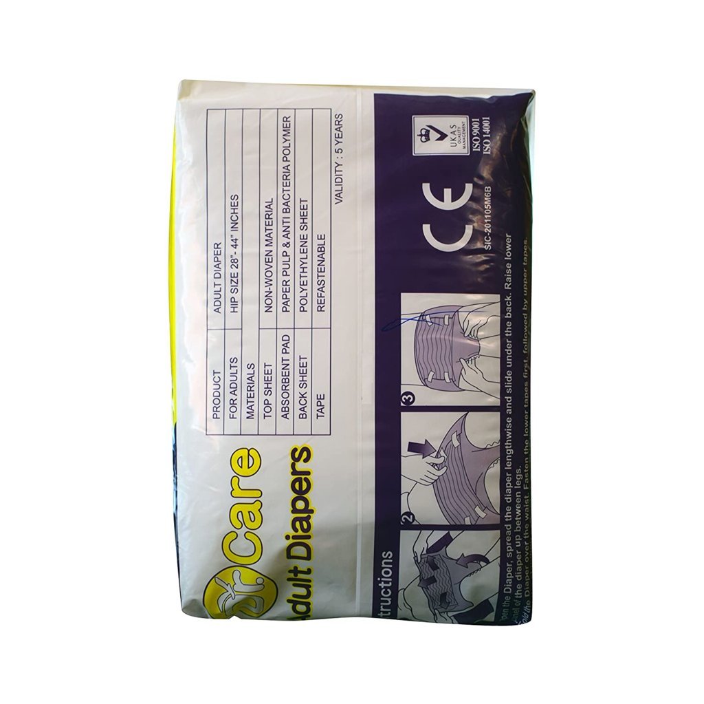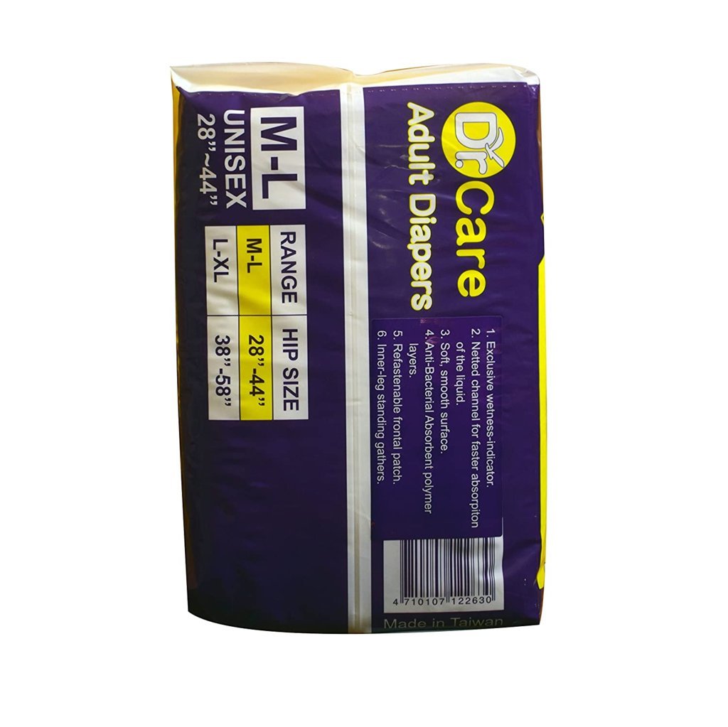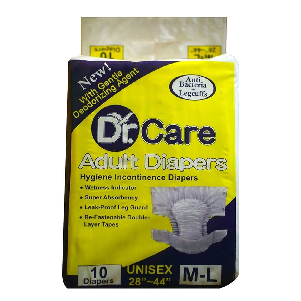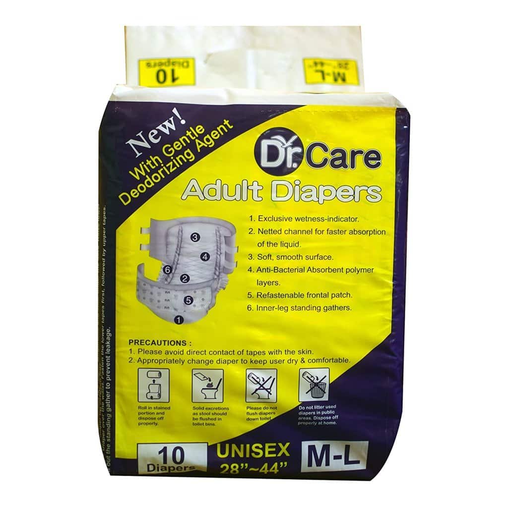 Dr Care Hygiene Incontinence Unisex ADULT Diapers with Anti Bacteria + Legcuffs M-L (28″-44″)
