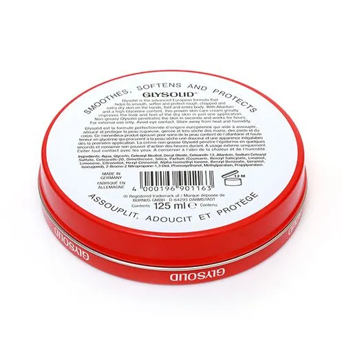 Glysolid is the Advanced European formula that helps to smooth, Soften and protects rough, Chapped and extra dry skin on the hands, feet and entire body, With Allantoin and a high Glycerine content, this is proven skincare cream greatly Improves the look and feel of the dry skin.
