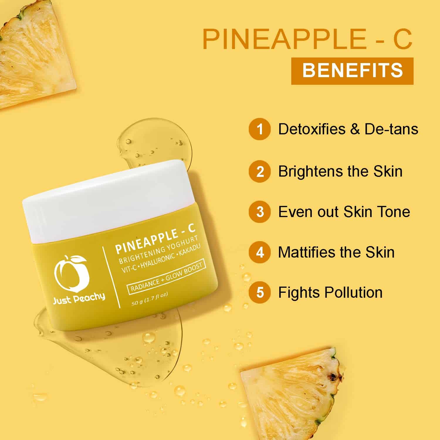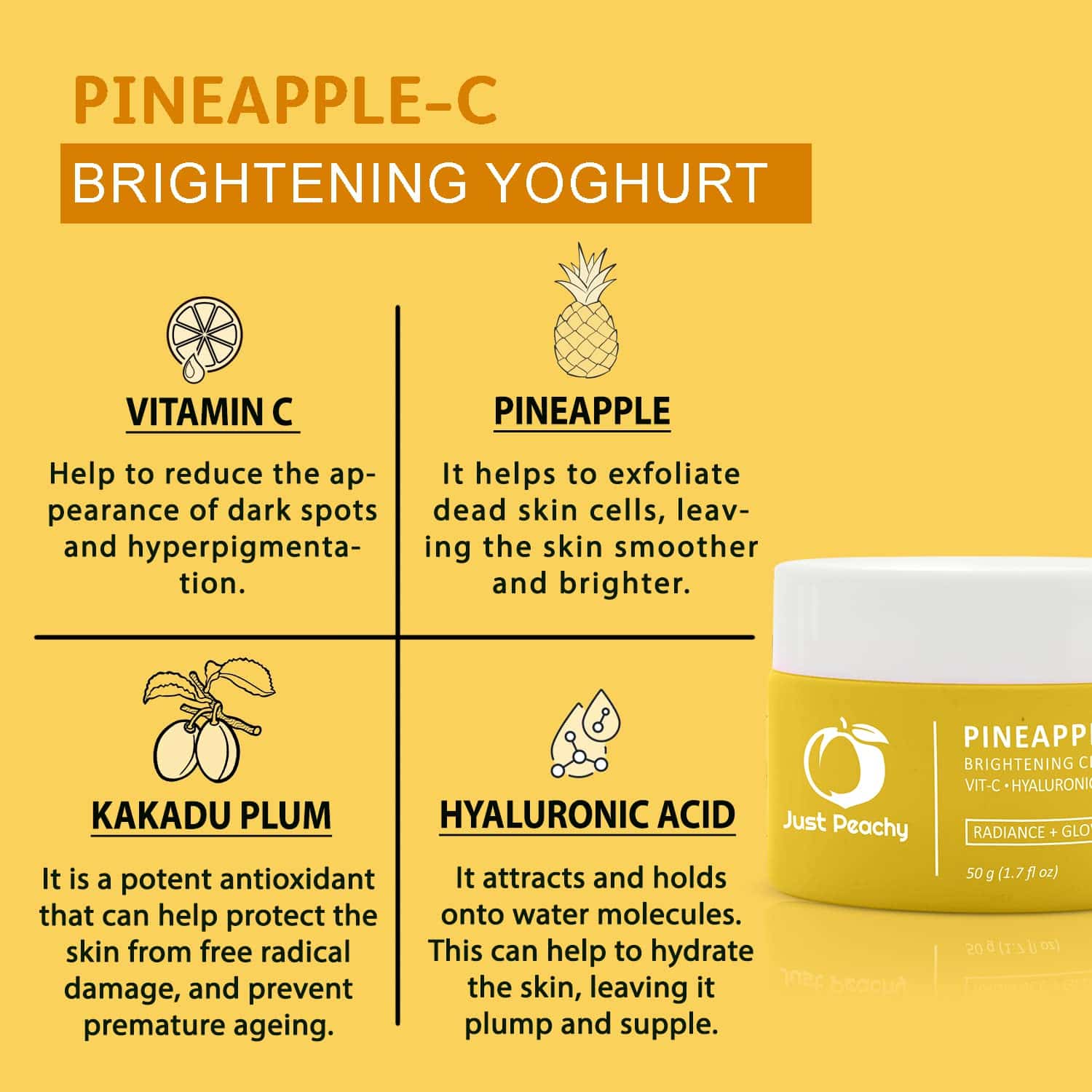 <b>Just Peachy Pineapple-C Brightening Yoghurt With Vitamin C, Hyaluroinc Acid, Pineapple and Kakadu Plum | Radiance + Glow Boosting Face Moisturizer | Fades Pigmentation, Reduces Skin Ageing | Super Soft Face Cream 50g