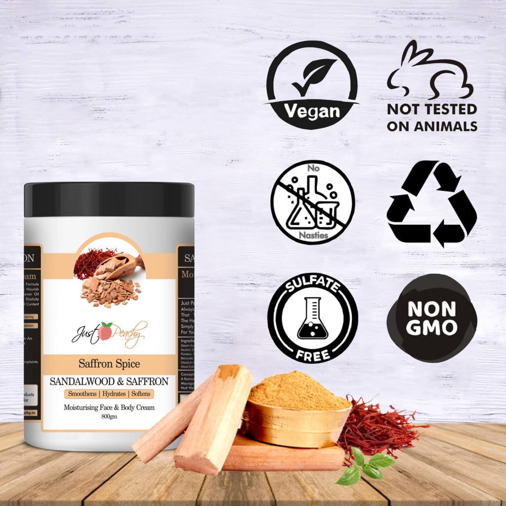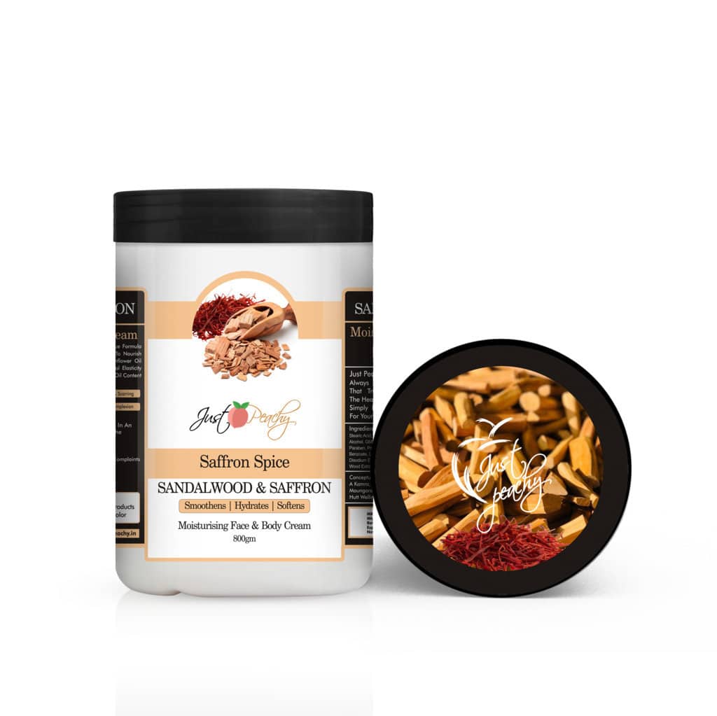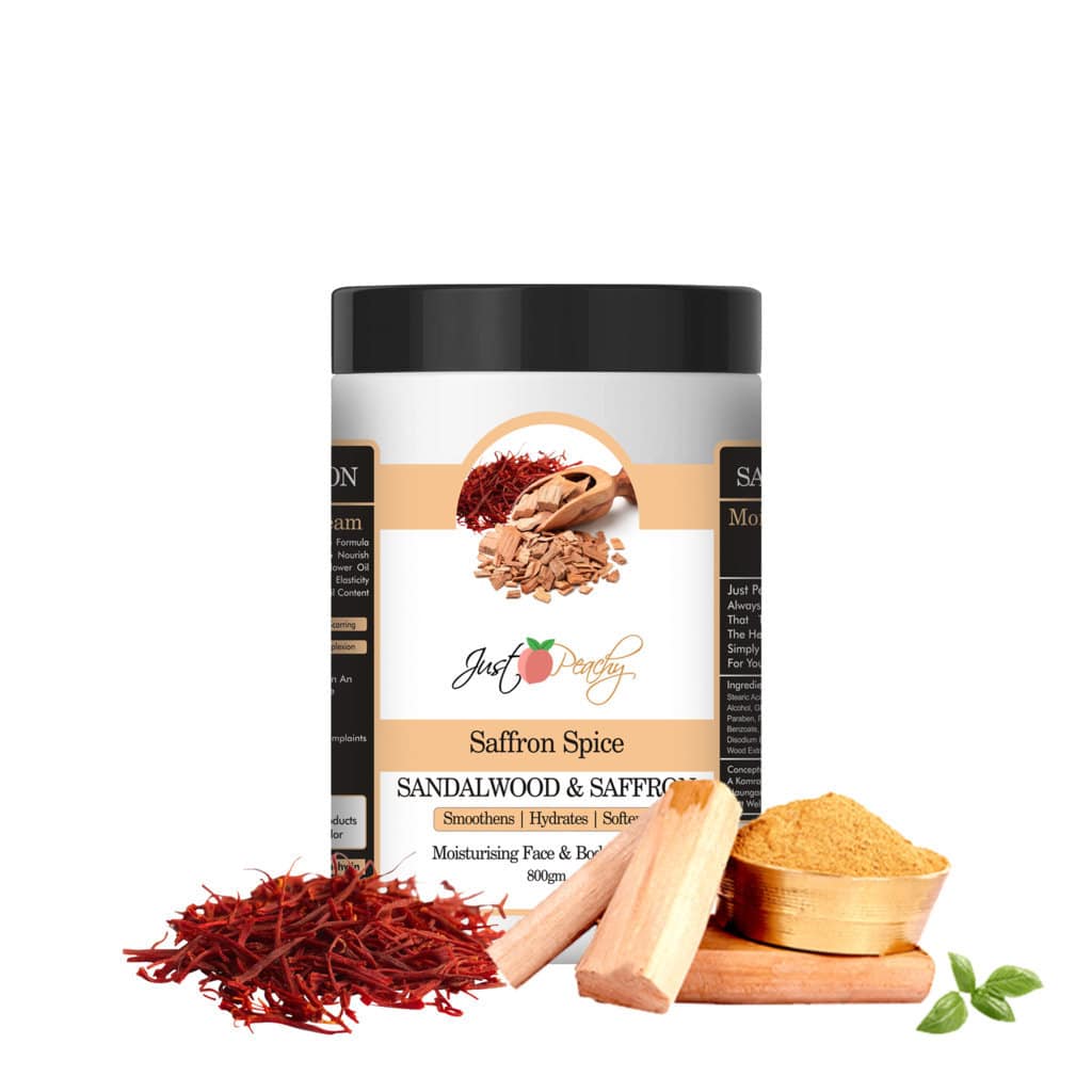 JUST PEACHY SAFFRON SPICE SANDALWOOD & SAFFRON FACE & BODY CREAM ENRICHED WITH TEA TREE & ALMOND OIL (800GM)