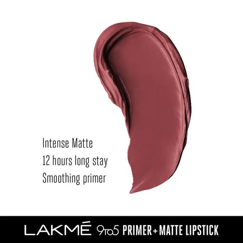 An unstoppable matte, for an unstoppable you! Introducing Lakmé 9to5 Primer+Matte Lipstick, with 2x built-in primer that gives your lips a long-lasting, smooth matte finish. It glides onto your lips smoothly and feels extremely comfortable and lightweight. The built-in primer ensures that the colour settles onto your lips evenly. With 14-hour long stay power, it is your perfect companion in conquering the day! Now say goodbye to touch-ups through the day, as this lipstick was made for the woman who doesn’t stop! Available in 20 intensely rich, matte shades, your search for the perfect colour ends with Lakmé 9to5 Primer+Matte Lipstick. Choose from a wide range of nudes, pinks, reds, browns, and plums that deliver rich colour without drying out your lips. It glides on smoothly for a flawless matte finish and a vibrant colour payoff. Pair it with Lakmé 9to5 Primer+Matte Perfect Cover Foundation, Lakme 9TO5 Eye Colour Quartet Eye Shadow and Lakmé Eyeconic Kajal to flaunt your fabulous looks round the clock! Look good and feel unstoppable as you put on your makeup.