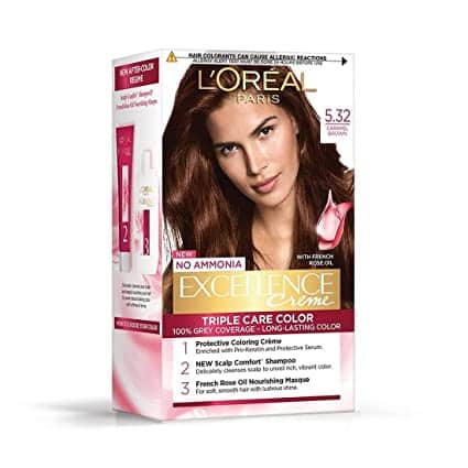 Excellence Creme hair colour triple protection means three ways to care for your hair: ceramide protects, pro-keratin strengthens & collagen replenishes. L’Oreal Paris Excellence Creme No5.32 Caramel Brown 100gm