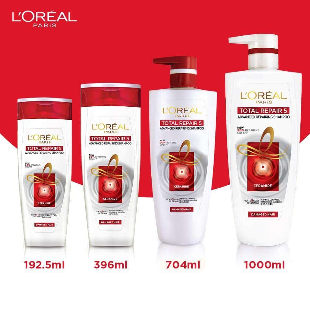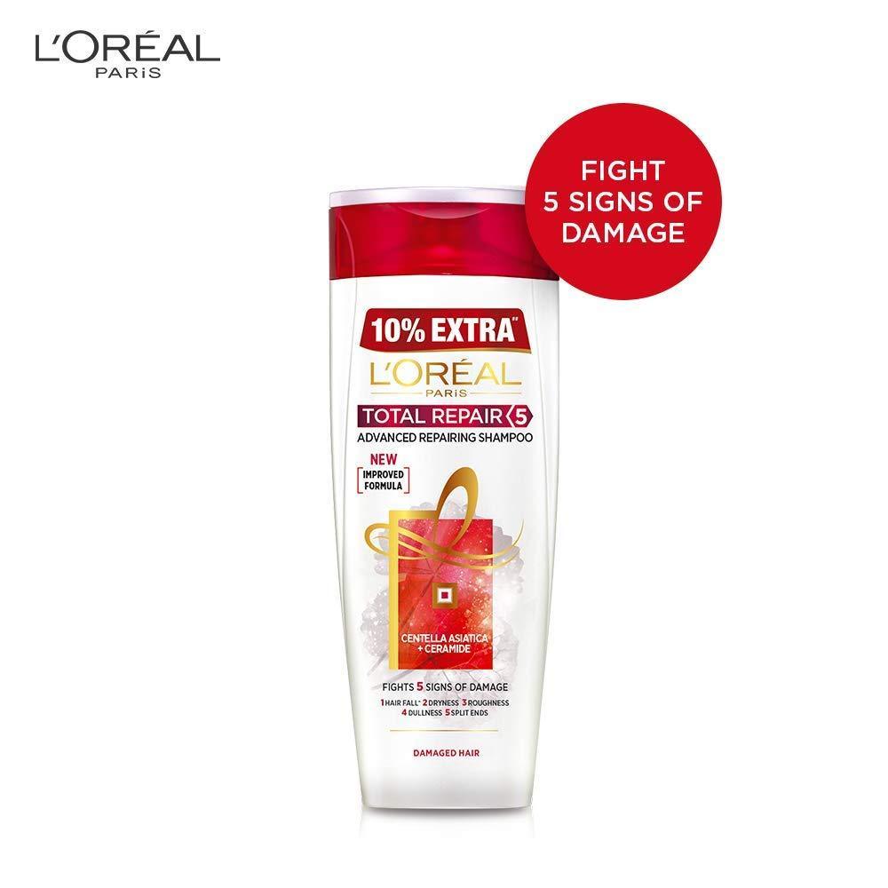 5 Problems.1 Solution. L’Oreal Paris Total Repair 5 Repairing Shampoo helps fight against the five visible signs of damaged hair – Hair fall, dryness, roughness, dullness and split ends without weighing it down. Damaged hair can lack the natural cement which keeps the hair strong and resilient. To ensure cohesion and strength, the L’Oreal Laboratories have created Ceramide-Cement technology to replicate the hair’s natural cement, targetting the 5 problems. Explore our best hair products to revive and repair damaged hair.