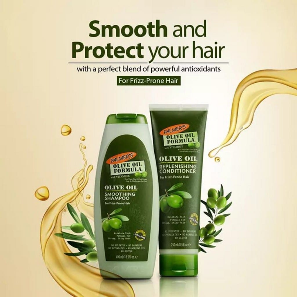 Sooth out the frizzy hair with Palmer’s Olive Oil Formula Smoothing Shampoo enriched with Extra Virgin Olive Oil, Hair Keratin Amino Acids and Vitamin E which provide hair strength and an excellent shine, also cleans the hair thoroughly by removing the product build up. Improves the hair texture and feel making it soft. Replenishes the nutrients and moisture of the hair.