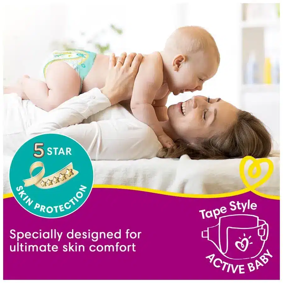 Your little miracle deserves gentle protection & full night’s sleep and mothers & doctors have always trusted Pampers to provide the care. Presenting New Pampers Active Baby taped diapers which provides your baby 5 star skin protection! How you ask? It has an Adjustable Taped Fit which you can custom-fit as per your baby’s need. The sides & waist are stretchable with 360 Degree Cottony Softness providing best comfort for your baby’s skin