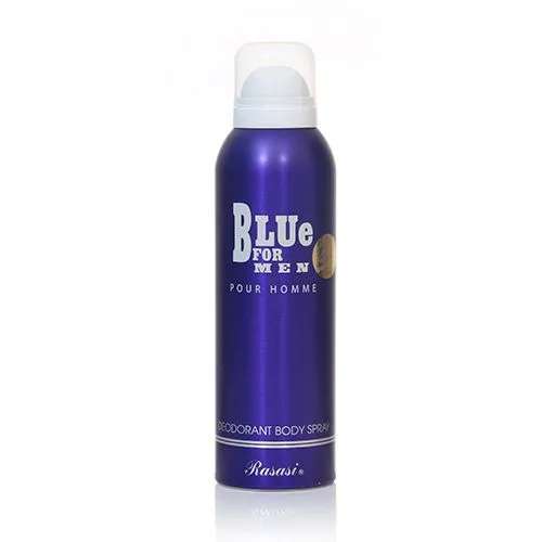 Rasasi Blue Pour Homme Deodorant For Men. The rich composition of Rasasi Blue for Men opens with fresh, sparkling, aromatic & citrus notes of mint & mandarine. The aromatic theme continues into the heart with coriander, rose & jasmine that mingle with geranium & pepper. Warm & retentive dry down notes of precious woods & amber add to the originality & luxuriousness of this fragrance.