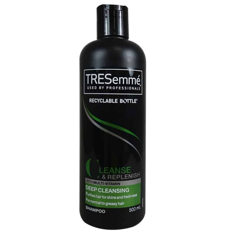 It purify and replenish deep cleanse shampoo will clarify and gently remove build-up and heavy residues that diminish your hair’s shine. Tresemmé shampoo 500 ml. Deep Cleansing This formula, containing vitamin C, is gentle enough or daily use and will purify your hair for that fresh, just-left-the-salon feel. Comes in 500 ml bottle. Tresemmé shampoo 500 ml. Deep Cleansing