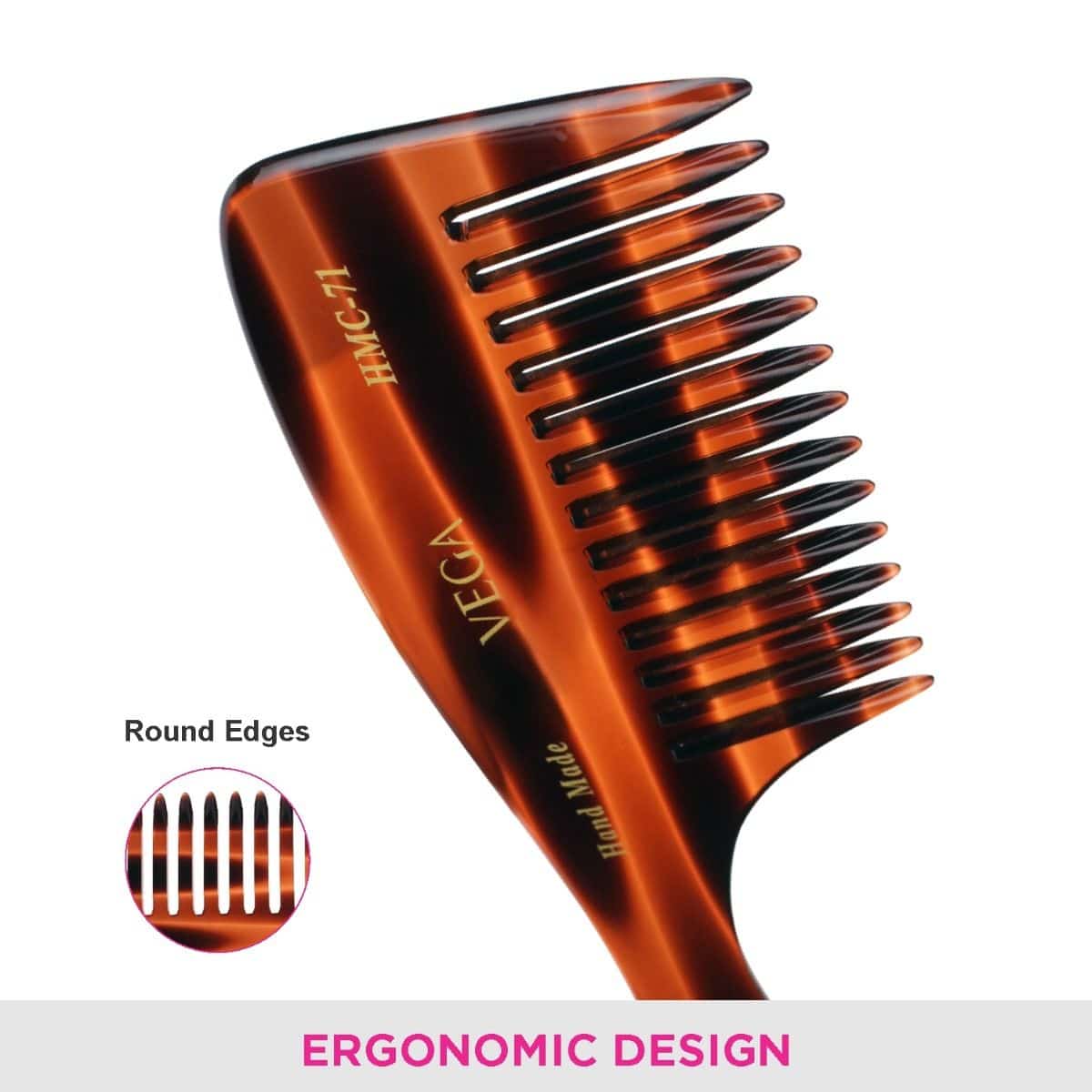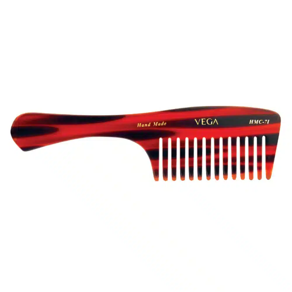 VEGA Handcrafted Combs are made from cellulose acetate which do not create static charge in hair due to its non-petroleum based material, which is derived from natural plants. It has smooth rounded teeth which do not hurt your scalp while combing and helps to reduce hair fall. It is gentle on the scalp and ideal for sensitive skin and helps to create styles while adding lustre