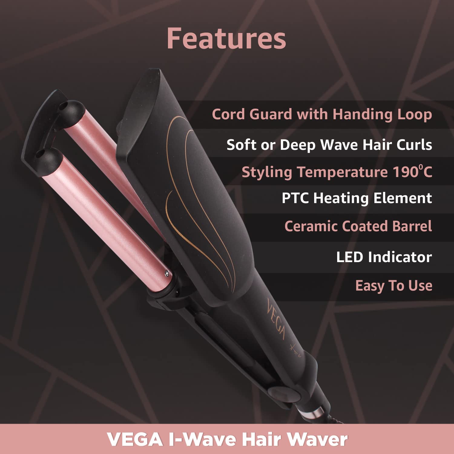 Look different, look stylish and look absolutely photo worthy with Vega I-Waver Hair waver. It comes with triple barrel to give you unique beach waves in minutes. With a ceramic coated barrel, it is gentle on your hair and minimizes the heat damage. Get beautiful and bouncy waves effortlessly with this easy-to-use hair styling tool.