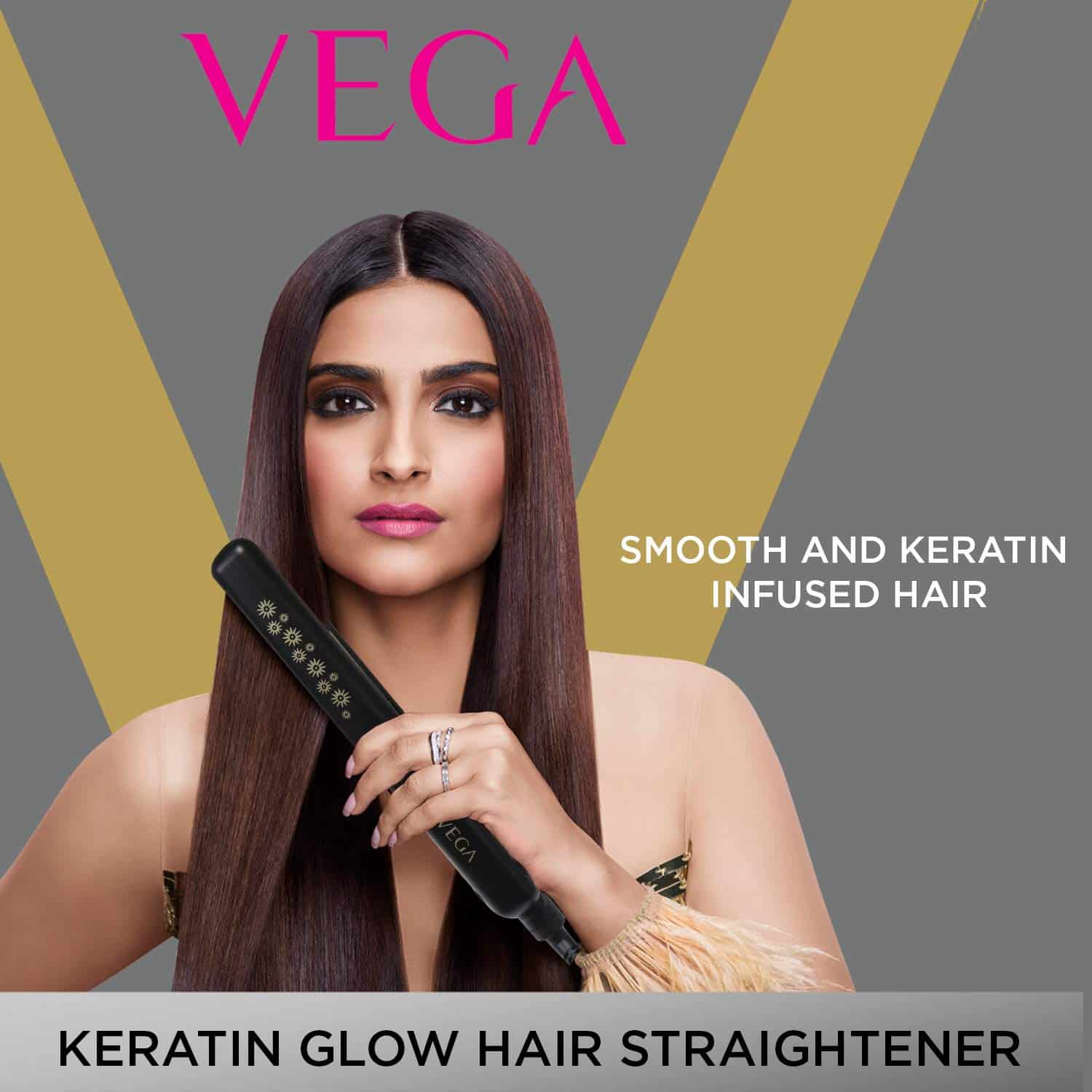 Get perfect care and glow for your hair with Vega Keratin Glow flat hair straightener. The straightener has a keratin infused ceramic plates to keep your hair healthier, shiner and provide ultimate smooth gliding. The straightener has a rotating temperature regulator to allow you to adjust the temperature setting from 170C to 230C. Without wasting your time the straightener is ready to use in 60 sec. The easy lock system allows you to close the plates together and provides easy and convenient storage.