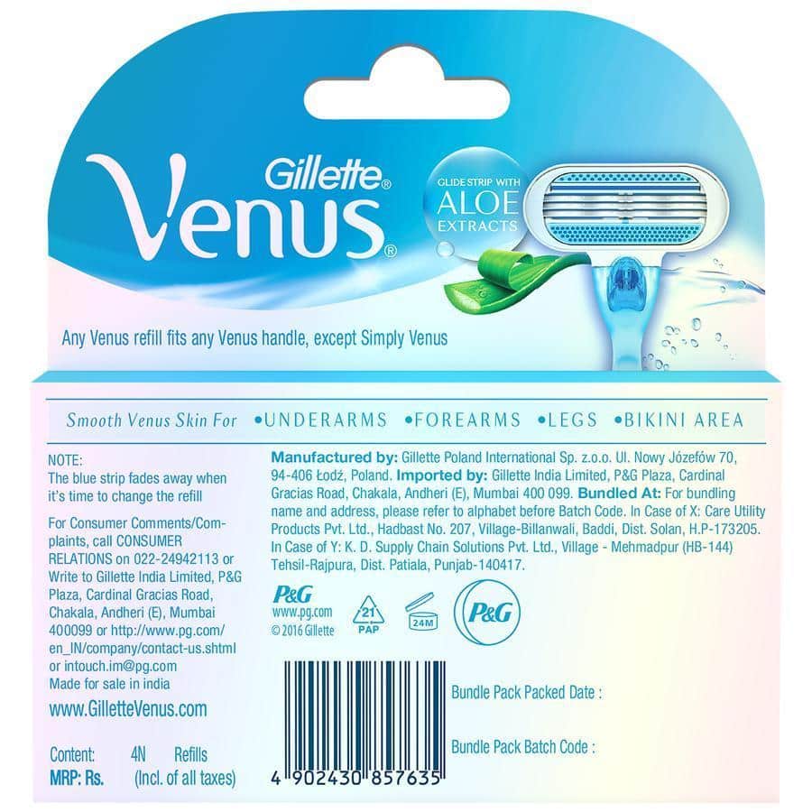 Gillette Venus Cartridge has the specialty of protective cushions around its three blades. Enjoy a smooth, nick-free and perfect shave with the perfect pivoting rounded head and easy access to hard to shave areas; all of it in one stroke. All the cartridges are interchangeable.