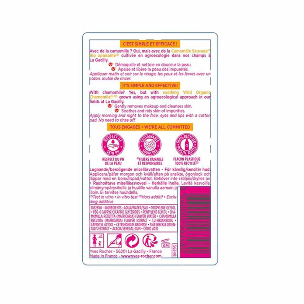 This micellar water is formulated with Organic Wild Chamomile with soothing properties, grown using an agroecological approach in our fields at La Gacilly. Benefits: Gently removes makeup and cleanses the skin, eyes and lips. Rids the skin of impurities. Results: Cleansed, soothed, and radiant skin. Skin Type: Sensitive skin &/or dry skin Plus Points: Its fresh water texture, leaves the skin soft.